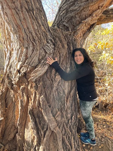 Civana offers a “desert bathing” excursion, which is based on the concept of forest bathing adapted for the Sonoran Desert. The goal is to immerse ourselves in nature using all five senses. During our hike, the guide had us stop at one point, sit, close our eyes, and just listen to the sounds around us. In another area, we paused to smell some of the bushes. And, of course, we stopped to take in the views. When our guide invited us to touch some of the leaves on the ground, I realized I rarely touch things in nature when I am hiking. The final sense-focused activity of the hike was stopping to hug a tree. While tree hugging often has negative connotations, our guide explained the health benefits of tree hugging. When you hug a tree, you release the oxytocin hormone which leads to positive feelings. It was so calming to give a big hug to this giant tree. I have a tree right in my yard, so tree hugging is an easy activity I can bring into my daily practice.